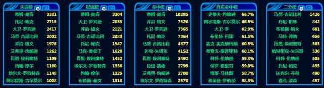 在罚球榜上排名第二5896个,稍逊于海军上将大卫罗宾逊。打铁榜上历史第一,10049个,球权的权重在手。马刺队的出场次数毫无疑问是第一名的,1392场。
